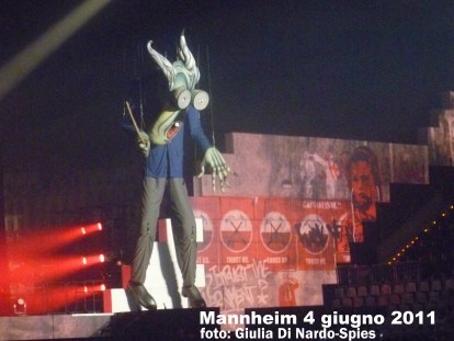 Sabato 4 giugno 2011. Roger Waters ha rappresentato il suo secondo concerto a Mannheim. Ascolto diverse persone che erano presenti anche il giorno prima , mai visto qualcosa di simile, dicono tutte! Ognuno racconta le sue esperienze, c'é perfino chi dice di essere stato cosí "sfortunato" di essere partito per vedere il concerto dell' 11 maggio a Londra e non il giorno dopo! I fans accorrono da ogni angolo della terra, ma tra tutti mi ha colpita piacevolmente una grande ammiratrice di Waters venuta dal Brasile. Peccato che proprio i grandi amici italiani non siano qui, mi viene un momento di nostalgia! Non credo ai miei occhi di essere riuscita a mantenere questo grande appuntamento, i biglietti per tutta la famiglia attendevano da un anno! La giornata é piovosa ma calda, attendiamo giá in molti di vivere il grande show. Finalmente, intorno alle ore 15 , abbiamo la possibilitá di ascoltare il soundcheck, breve, forse perché nella stessa Arena avevano suonato giá il giorno prima. Mi accingo a comprare un tour programme e mi incanto a guardare la grossa scelta di t-shirt, peró alla fine non cedo...Gli ultimi scambi di opinione tra fans e poi gli ultimi minuti che non passano mai! Finalmente si puó andare a cercare il posto. In sala, prima del concerto, ci fanno ascoltiano brani di Dylan, Lennon...Waters non cambierá mai i suoi gusti musicali. Con pochi minuti di ritardo inizia il concerto, o meglio dire, il grande spettacolo. Incredibile, é uno show cosí grande ma Waters sembra che stia dando un concerto per pochi amici. Molto rilassato e a suo agio, riesce perfettamente a trasmettere al pubblico tutto quello di cui aveva da dire.Waters prova anche con successo a dire un paio di frasi in tedesco e ricorda anche dei suoi vecchi concerti in Germania relativi allo stesso album. Anche se The Wall é quasi suonato cosí come lo si conosce, il resto dei musicisti sembra svanire dietro le scene gigantesche e ultra moderne rispetto all'originale The Wall Tour. Non credo che sia solo la mancanza di un virtuoso della chitarra come Gilmour a far perdere peso agli altri componenti del gruppo ma é principalmente la forza dell'interpretazione di Waters . Veramente niente male gli altri vocalisti, Wyckoff , Joyce e i Lennon! Per chi non ha potuto assistere ad almeno un concerto dico che é stato un vero peccato, purtroppo la grandiositá di questo spettacolo é impossibile da descrivere. Con la pubblicazione di un DVD, magari il concerto intero del 12 maggio, potremo tutti ricordare questo storico ed ineguagliabile tour. Giulia Di Nardo-Spies |