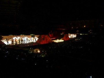 The Wall Live approda allo Stadio Olimpico di Roma, cornice perfetta per il ritorno nel nostro paese di uno degli spettacoli più straordinari della storia del rock. La scenografia è stata ingrandita e migliorata per i concerti "open air", anche il suono e gli arrangiamenti cambiano: tutto diventa più colossale e allo stesso tempo più coinvolgente. Ora, sul muro, vengono proiettati anche i primi piani dei musicisti, accompagnati da animazioni, filmati e dai soliti pupazzi giganti, che in uno stadio come questo sembrano rimpiccioliti. Il pubblico rimane a bocca aperta già alla fine di In The Flesh?, il primo brano, sballottato tra musica, luci, fuochi d'artificio e dall'aereo che si schianta vicino al palco. I suoni sempre più avvolgenti e i nuovi arrangiamenti, danno un tocco di freschezza nuova all'opera; i brani scorrono in modo più fluido rispetto al precedente tour. Unico neo, il microfono che non funziona nella prima strofa di Nobody Home, ma Waters riesce a scherzarci su. Roger dedica il concerto a Jean Charles de Menezes, ragazzo ucciso a Londra perchè scambiato per un terrorista. Il concerto termina con Waters e la band che cantano e suonano insieme a tutto lo stadio una italianissima "alè oh oh"!!! Stando a quanto hanno scritto i giornali erano presenti 40/50 mila persone, anche se credo che fossero almeno 60 mila, tutti appagati pienamente, visti i commenti che si sentivano. Fabrizio Taricco |
