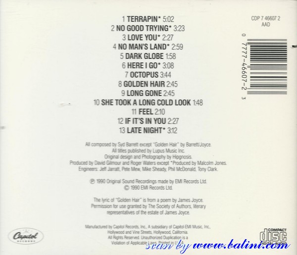 Syd Barrett, The Madcap Laughs, Capitol, CDP 7 46607 2