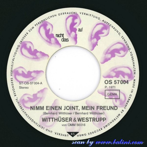 | OS-57 004 | Witthuser and Westrupp | Nimm Einen Joint Mein Freund | ST-505 | Alexis Korner and Snape | Sweet Sympathy | ||