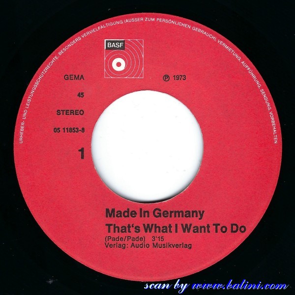 | 05-11853-8 | Made In Germany | Thats What I Want To Do | 6003-106 | Zweistein | Im Melody Maker | ||