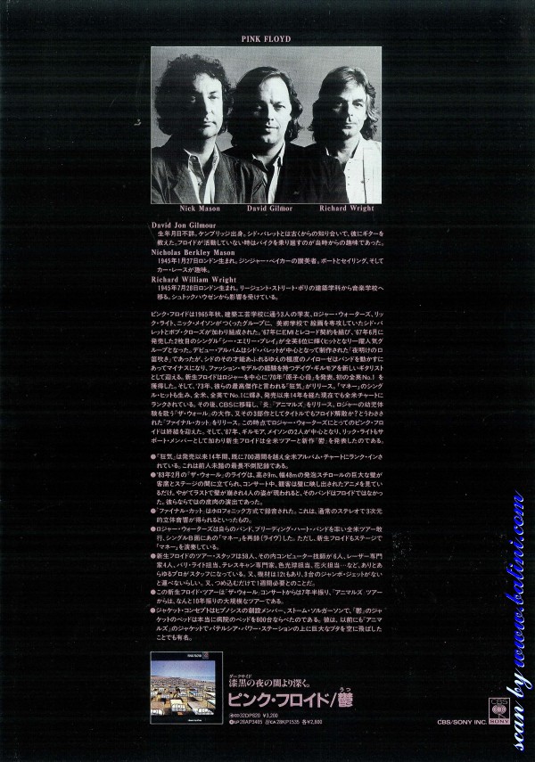 Japan Pgm Pink Floyd Japan Pgm
