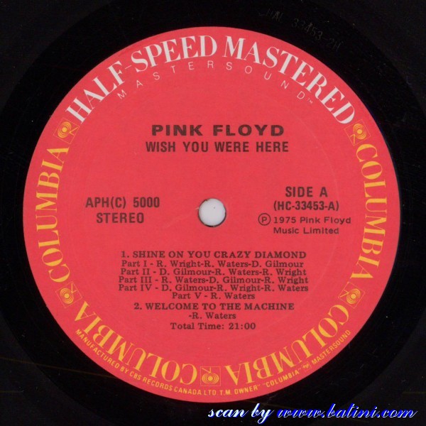 Pink Floyd, Wish You Were Here, CBS, APHC 5000