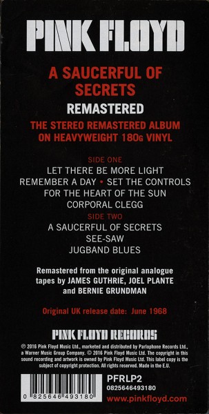 Pink Floyd, A Saucerful Of Secrets, Parlophone, PFRLP2