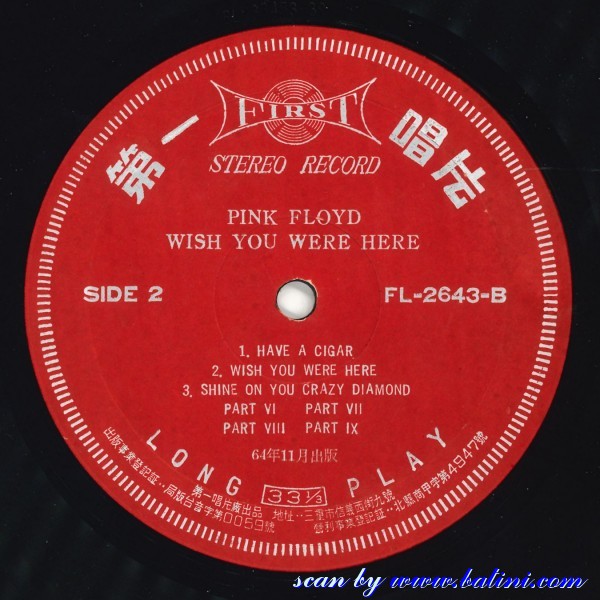 Pink Floyd, Wish You Were Here, First, FL-2643