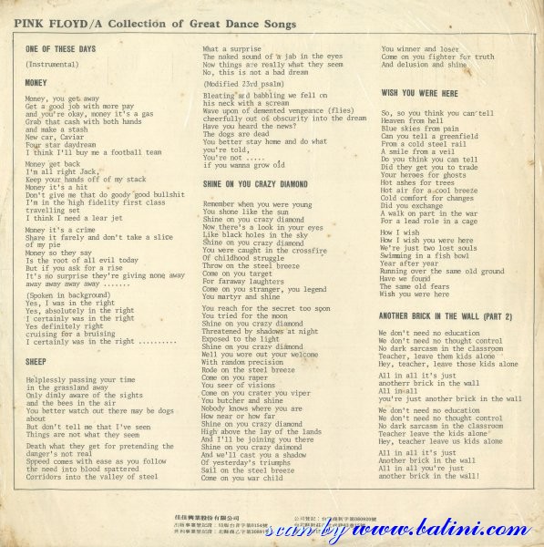Pink Floyd, A Collection of Great, Dance Songs, JiaJia, JLB-6408